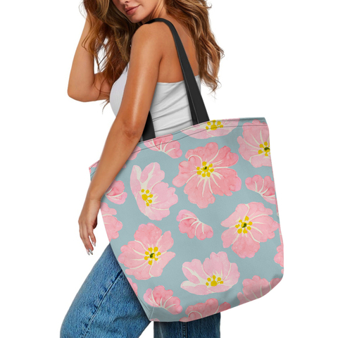 Personnalisé grande capacité impression florale coton sac à provisions femmes léger coton épaule plage fourre-tout